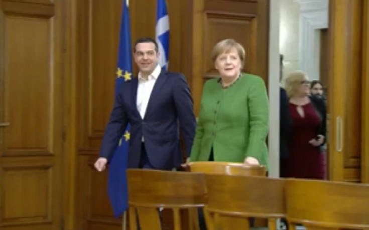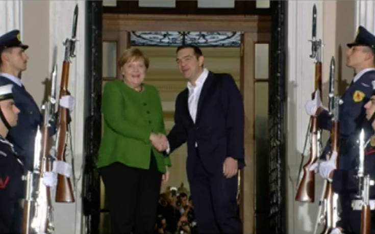 Πέντε χρόνια μετά την τελευταία της επίσκεψη στην Ελλάδα, η Άνγκελα Μέρκελ έρχεται σήμερα σε μία διαφορετική Ελλάδα, που μετά από μεγάλες δυσκολίες κατάφερε να ξεπεράσει την κρίση και να μπει στον δρόμο της ανάπτυξης και της ανασυγκρότησης, δήλωσε ο πρωθυπουργός Αλέξης Τσίπρας, σε δηλώσεις του μπροστά στις κάμερες πριν τη συνάντησή του με τη Γερμανίδα καγκελάριο στο Μέγαρο Μαξίμου.
