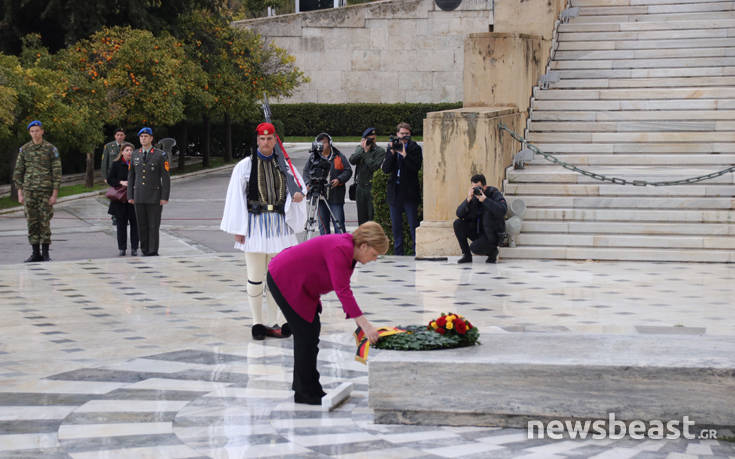 Σε κατάθεση στεφάνου στο μνημείο του Αγνώστου Στρατιώτη προχώρησε λίγο μετά τις 10:00 η Άνγκελα Μέρκελ, η οποία στη συνέχεια θα έχει συνάντηση με τον πρόεδρο της Ελληνικής Δημοκρατίας, Προκόπη Παυλόπουλο.