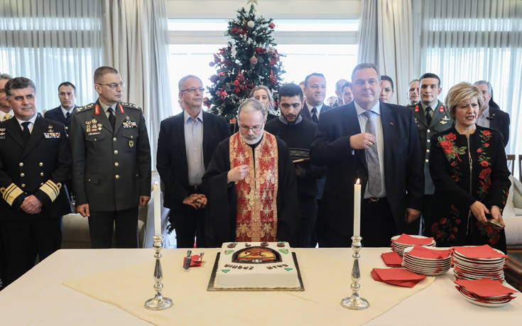 Μέσα σε φορτισμένο συγκινησιακά κλίμα πραγματοποιήθηκε στο Δώμα του ΓΕΝ η κοπή της πρωτοχρονιάτικης πίτας του υπουργείου Εθνικής Άμυνας από τον απερχόμενο υπουργό, Πάνο Καμμένο. Στην τελετή παρέστησαν σύσσωμη η στρατιωτική και πολιτική ηγεσία του υπουργείου -εκτός του Α/ΓΕΕΘΑ, ναυάρχου Ευάγγελου Αποστολάκη, που εκείνη την ώρα είχε συνάντηση με τον πρωθυπουργό Αλέξη Τσίπρα.