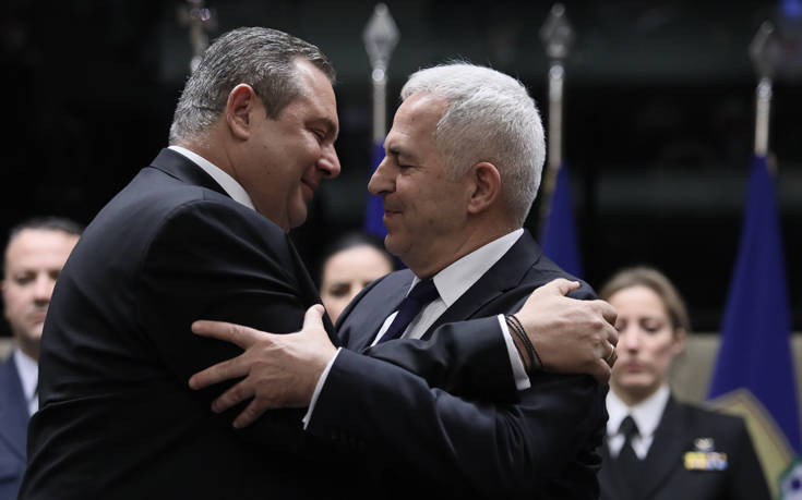 Από την πλευρά του απερχόμενος υπουργός Πάνος Καμμένος, μιλώντας, με ιδιαίτερη συγκίνηση, προς το πολιτικό και στρατιωτικό προσωπικό του υπουργείου Εθνικής ‘Αμυνας, τόνισε: «Η θέση του υπουργού Εθνικής Άμυνας είναι η πιο σημαντική για έναν πολιτικό και είχα αποφασίσει να ολοκληρώσω τη σταδιοδρομία μου μετά τη σημερινή τελετή, ωστόσο είμαι υποχρεωμένος να μην εγκαταλείψω τη σημαία τώρα που δυστυχώς συμπολίτευση και αντιπολίτευση παραδίδουν το ιερό όνομα της Μακεδονίας μας. Είμαι έτοιμος να δεχθώ επιθέσεις και θα συνεχίσω τον αγώνα έστω και εάν μείνω μόνος μέχρι τη δικαίωση».