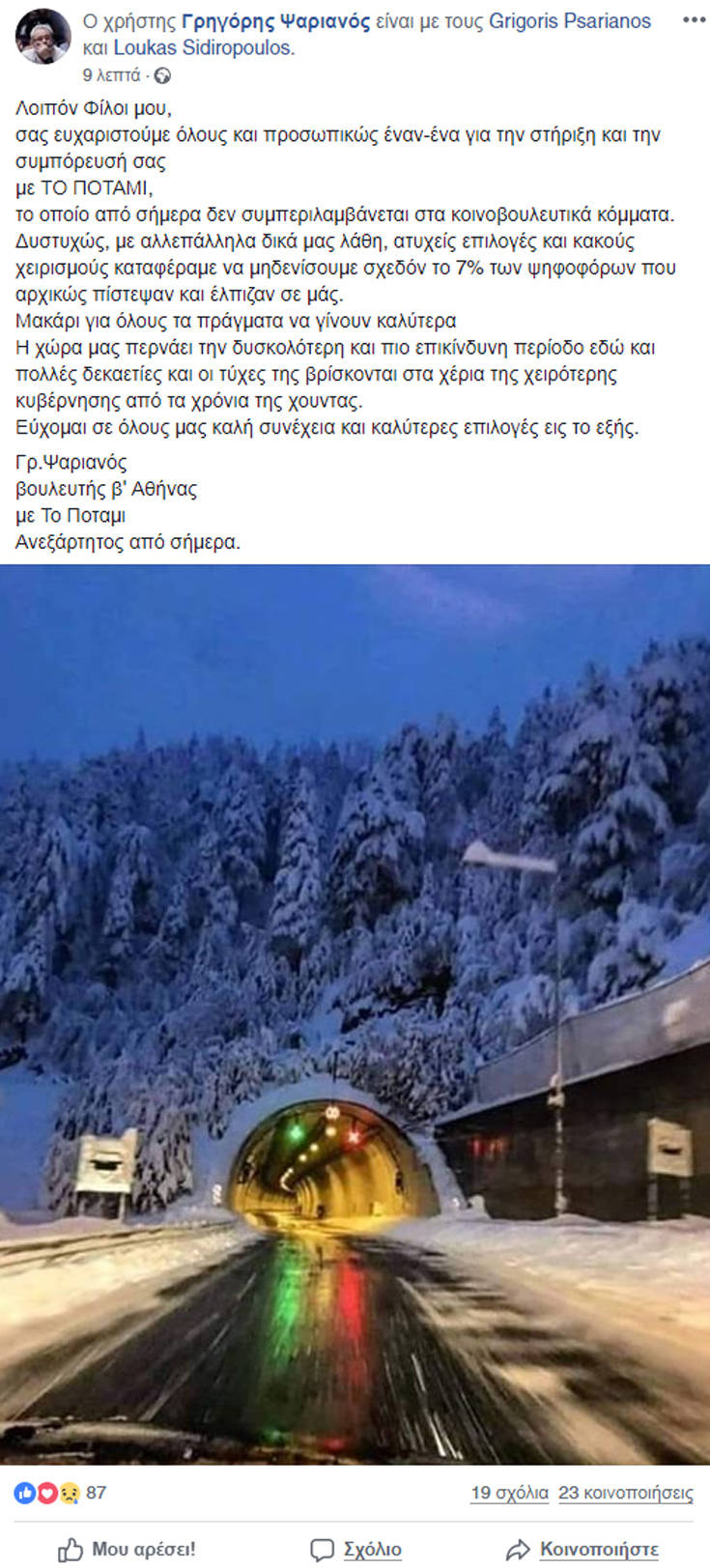 σας ευχαριστούμε όλους και προσωπικώς έναν-ένα για την στήριξη και την συμπόρευσή σας με ΤΟ ΠΟΤΑΜΙ, το οποίο από σήμερα δεν συμπεριλαμβάνεται στα κοινοβουλευτικά κόμματα.
