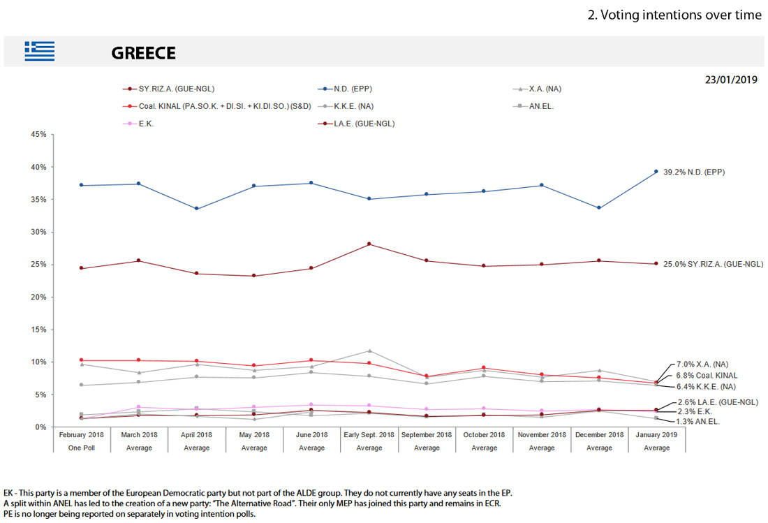 Οι τάσεις του εκλογικού σώματος περίπου τέσσερις μήνες πριν τις ευρωεκλογές του Μαΐου και πριν τις εθνικές εκλογές που το αργότερο θα πραγματοποιηθούν τον Οκτώβριο του 2019, καταγράφονται σε έρευνα του Ευρωπαϊκού Κοινοβουλίου, ενόψει της μάχης των ευρωπαϊκών καλπών.