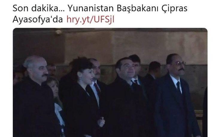 Στην Αγία Σοφία ξεναγήθηκε ο πρωθυπουργός Αλέξης Τσίπρας, ο οποίος έφτασε στο μνημείο συνοδευόμενος από τον υπουργό Παιδείας Κώστα Γαβρόγλου, τον αναπληρωτή υπουργό Εξωτερικών Γιώργο Κατρούγκαλο, τον υφυπουργό Εξωτερικών Μ. Μπόλαρη και τη σύντροφό του Μπέτυ Μπαζιάνα.