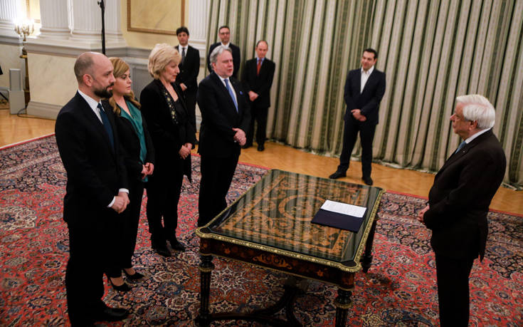 Ενώπιον του Προέδρου της Δημοκρατίας κ. Προκόπη Παυλόπουλου και παρουσία του Πρωθυπουργού κ. Αλέξη Τσίπρα, ολοκληρώθηκε πριν από λίγο στο Προεδρικό Μέγαρο η ορκωμοσία των νέων μελών του Υπουργικού Συμβουλίου, μετά από τον πρόσφατο ανασχηματισμό.