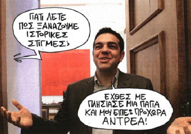 ΠΟΛΙΤΙΚΗ #Αλέξης Τσίπρας#πολιτική Γιατί λέτε πως ξαναζούμε ιστορικές στιγμές; Πετυχημένη γελοιογραφία από το πρωτοσέλιδο του Ποντικιού 06·12·2012 12:22 54 σχόλια Από το εξώφυλλο της σημερινής εφημερίδας Το Ποντίκι…