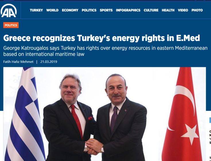 Μάλιστα, το επίσημο τουρκικό πρακτορείο Anadolu αναφέρει χαρακτηριστικά στον τίτλο του ότι «Η Ελλάδα αναγνωρίζει τα ενεργειακά δικαιώματα της Τουρκίας στην ανατολική Μεσόγειο».