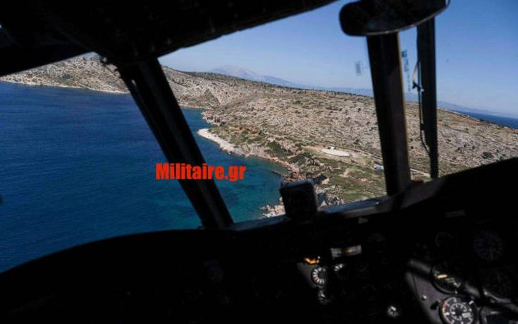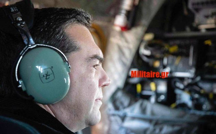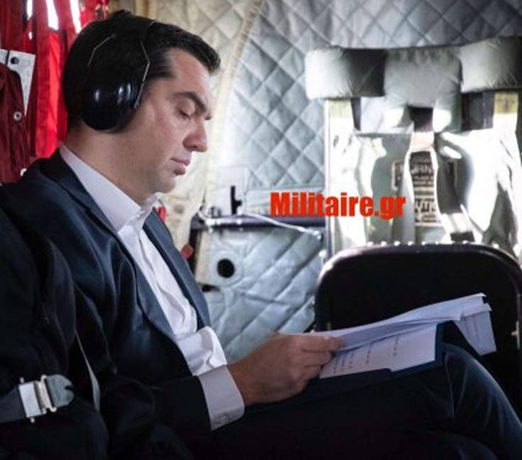 Το φως της δημοσιότητας είδαν φωτογραφίες μέσα από το σινούκ, που μετέφερε ανήμερα της 25ης Μαρτίου τον πρωθυπουργό Αλέξη Τσίπρα στο Αγαθονήσι, το οποίο παρενοχλήθηκε από τουρκικά μαχητικά.