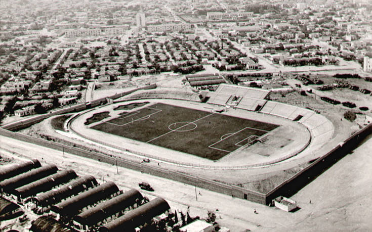 β) Φωτογραφία αρχείου του πρώτου γηπέδου.