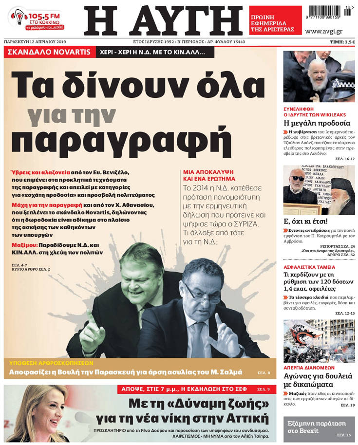 Η «Αυγή» στο πρωτοσέλιδο της επικρίνει την κίνηση του κ. Κουρουμπλή με τον τίτλο «Ε, όχι και έτσι!», επισημαίνοντας την έντονη δυσαρέσκεια και ενόχληση στο εσωτερικό του ΣΥΡΙΖΑ. Κάνει λόγο για το τηλεφώνημα δυσαρέσκειας από τον γραμματέα της Κεντρικής Επιτροπής του ΣΥΡΙΖΑ Πάνο Σκουρλέτη και τον ισχυρισμό του Παναγιώτη Κουρουμπλή ότι η συνάντηση με τον Αμβρόσιο ήταν τυχαία.