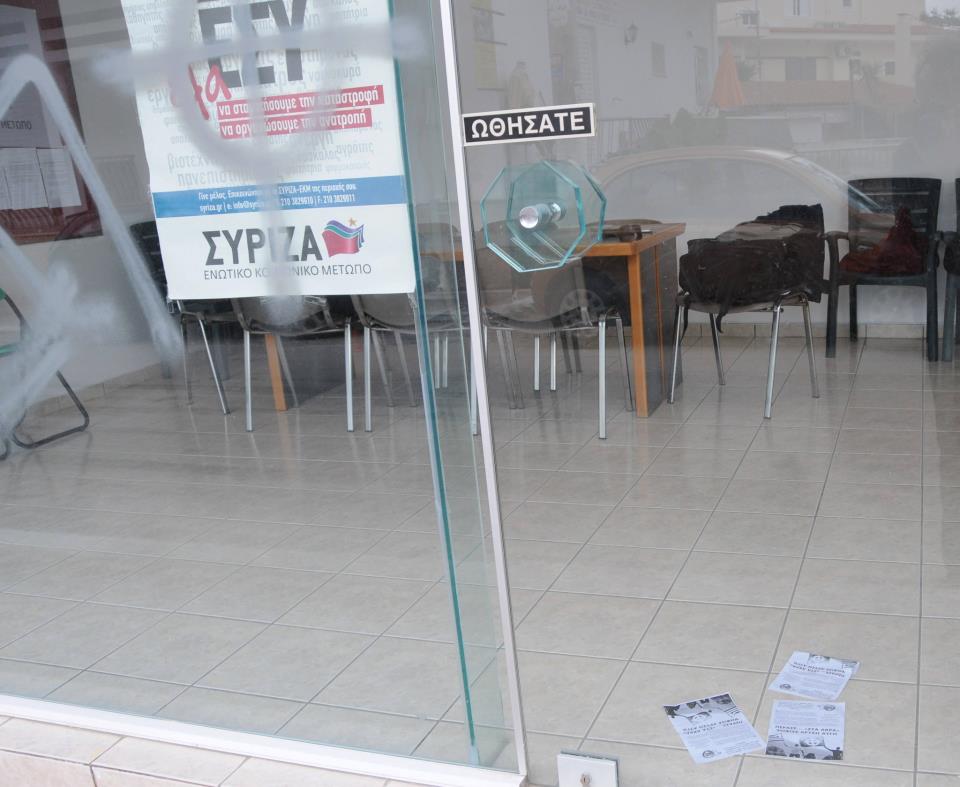 Ο ΣΥΡΙΖΑ Σαρωνικού ανακοίνωσε ότι δέχτηκε επίθεση στα γραφεία του, στην οδό Πλάτωνος 4 στην Ανάβυσσο, τη νύχτα της Κυριακής.