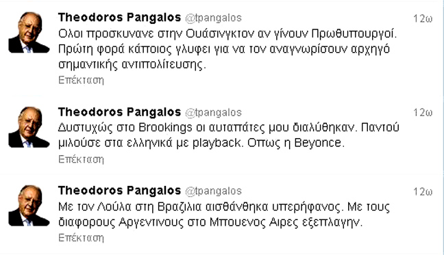 Ο Θεόδωρος Πάγκαλος έχει μία… αδυναμία στο twitter και φυσικά η… αδυναμία του μεγαλώνει περισσότερο όταν στο μυαλό του έρχεται ο ΣΥΡΙΖΑ και ο Αλέξης Τσίπρας.