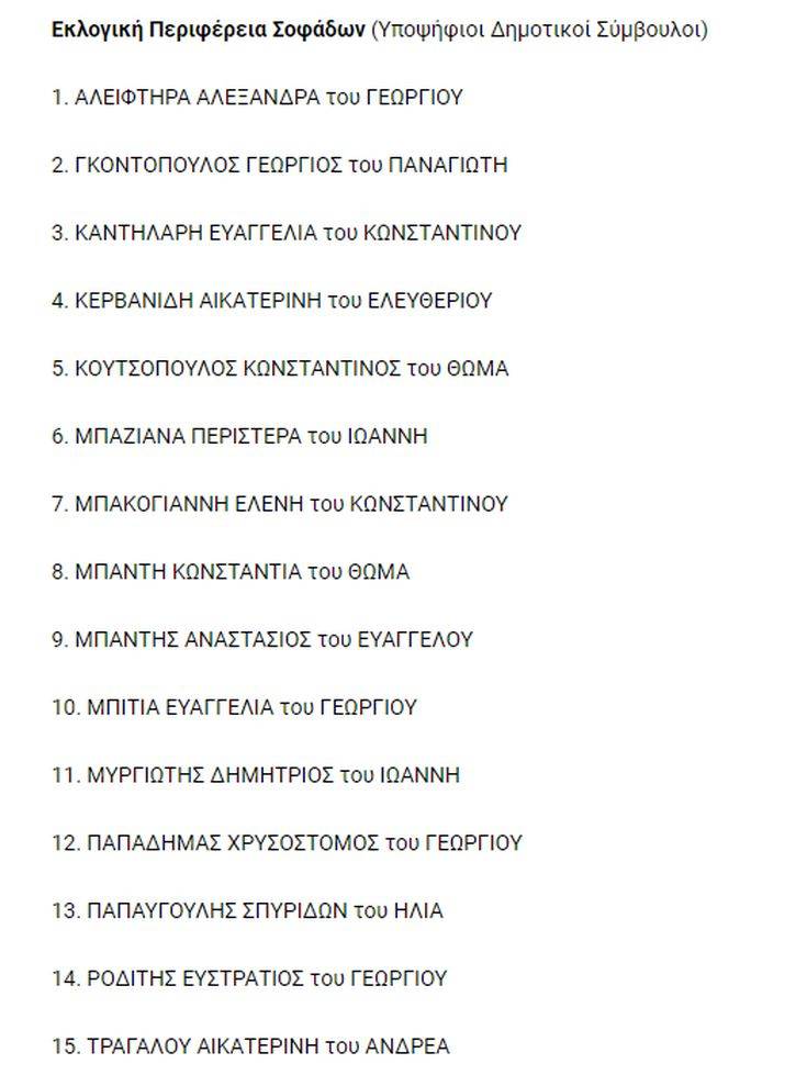Τα ονόματα των υποψηφίων των συνδυασμών της «Λαϊκής Συσπείρωσης» στους πέντε δήμους του νομού Καρδίτσας κατατέθηκαν στο Πρωτοδικείο, με το όνομα που δημιουργεί τη μεγαλύτερη αίσθηση από όλα να είναι αυτό της Περιστέρας Μπαζιάνα στην εκλογική περιφέρεια των Σοφάδων.