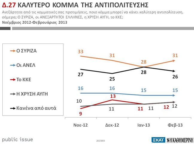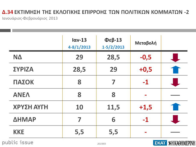 Η έρευνα της Public Issue διενεργήθηκε τηλεφωνικά, σε πανελλαδική κλίμακα, μεταξύ 1ης και 5ης Φεβρουαρίου 2013.