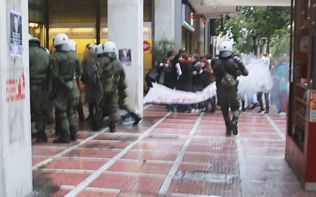 Τα ΜΑΤ, καταγγέλλει ο ΣΥΡΙΖΑ, δεν δίστασαν «να διαλύσουν εντελώς απρόκλητα μια ειρηνική διαμαρτυρία, να ξυλοφορτώσουν και να τραυματίσουν νέους ανθρώπους, ανάμεσα στους οποίους ήταν και βουλευτές της αξιωματικής αντιπολίτευσης».