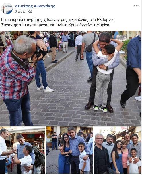 Μια ευχάριστη έκπληξη επεφύλασσε η περιοδεία του Προέδρου της ΝΔ, Κυριάκου Μητσοτάκη, στο Ρέθυμνο για τον Γραμματέα του Κόμματος, Λευτέρη Αυγενάκη.