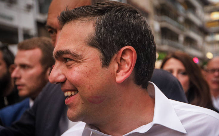 Ο φωτογραφικός φακός μαρτύρησε την αγάπη μιας γυναίκας-οπαδού του ΣΥΡΙΖΑ, που φίλησε τον πρωθυπουργό αφήνοντας στο μάγουλό του σημάδι από κόκκινο κραγιόν.