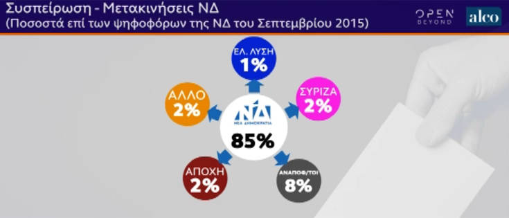 Τέλος όσον αφορά τις συσπειρώσεις παρατηρούμε της ΝΔ ανέρχεται στο 85% ενώ η αντίστοιχη συσπείρωση του ΣΥΡΙΖΑ βρίσκεται στο 56%.
