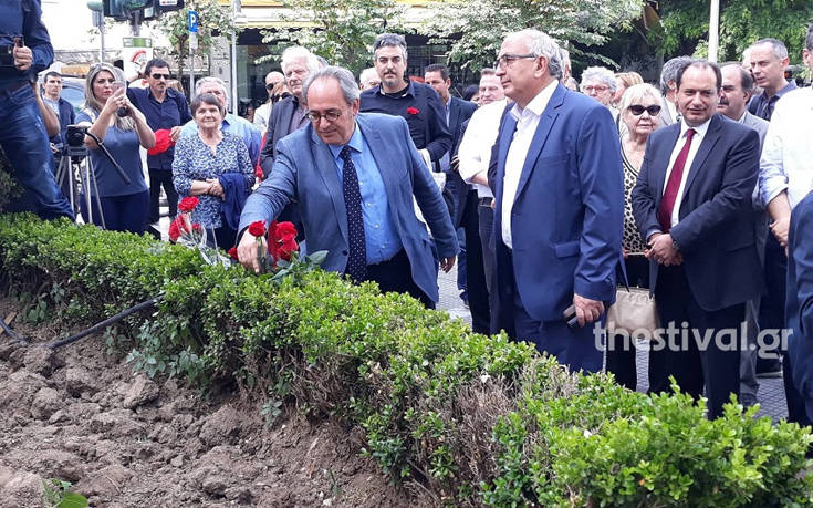 Στεφάνι στο μνημείο του κατέθεσαν: ο ΣΥΡΙΖΑ Θεσσαλονίκης, ο υπουργός Υποδομών και Μεταφορών Χρήστος Σπίρτζης, από το ΥΜΑΘ ο Κωνσταντίνος Αμπατζάς, διευθυντής του γραφείου της υφυπουργού μαζί με τον υποψήφιο Περιφερειάρχη Κεντρικής Μακεδονίας Χρήστο Γιαννούλη, η υποψήφια δήμαρχος Θεσσαλονίκης Κατερίνα Νοτοπούλου μαζί με την υποψήφια δημοτική σύμβουλο Ρία Καλφακάκου, ο πρόεδρος του ΟΑΣΘ Στέλιος Παππάς, ο πρόεδρος της ΑΤΤΙΚΟ ΜΕΤΡΟ Α.Ε. Γιάννης Μυλόπουλος μαζί με τον βουλευτή Γιάννη Αμανατίδη καθώς και οι Εργαζόμενοι του Μετρό Θεσσαλονίκης.