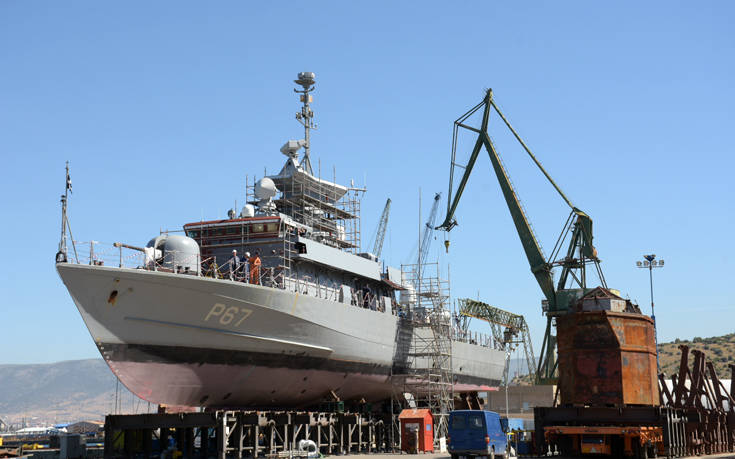 Στα ναυπηγεία της Ελευσίνας, όπως γνωρίζετε, έχουμε δύο πολεμικά πλοία, το Νο 6 και το Νο 7 του ναυπηγικού προγράμματος των Πυραυλακάτων, τις οποίες πρέπει να ολοκληρώσουμε. Στο ένα πλοίο έχει ολοκληρωθεί η κατασκευή σε ποσοστό 90% και στο άλλο είναι περίπου στο 70%. Απομένει, λοιπόν, χρόνος για να ολοκληρωθούν τα εν λόγω πολεμικά πλοία αλλά παράλληλα υπάρχουν αρκετά προβλήματα με τους εργαζόμενους, με την ιδιοκτησία των ναυπηγείων και όπως προανέφερα, αυτή τη στιγμή είμαστε στη διαδικασία ανευρέσεως επενδυτή. Υπάρχουν ενδιαφερόμενοι, είμαστε πολύ κοντά στο να κλείσουμε τη συμφωνία με κύριο στόχο να συνεχίσουν τα ναυπηγεία να λειτουργούν, να διασφαλιστούν οι εργαζόμενοι και να ολοκληρωθεί το ναυπηγικό πρόγραμμα των πλοίων του Πολεμικού Ναυτικού.