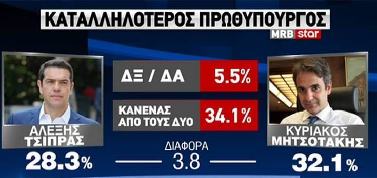 Αρχικά οι πολίτες κλήθηκαν να απαντήσουν στο ερώτημα «ποιος μπορεί να εξυπηρετήσει καλύτερα τα συμφέροντά σας;» ένα 23,8% απάντησε Αλέξης Τσίπρας, το 27,8% Κυριάκος Μητσοτάκης και το 41,1% «κανένας από τους δύο».