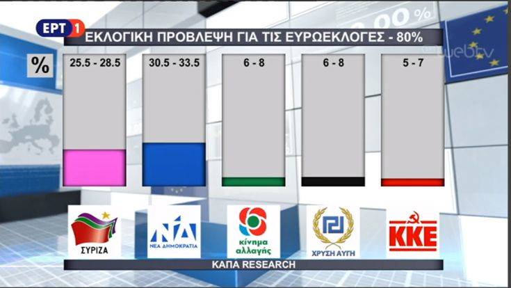 Μπροστά με ποσοστό % δίνει τη Νέα Δημοκρατία έναντι του ΣΥΡΙΖΑ η ΕΡΤ στη δική της εκλογική εκτίμηση, που δίνεται σε συνεργασία με την Kapa Research.