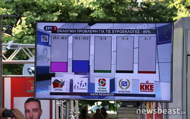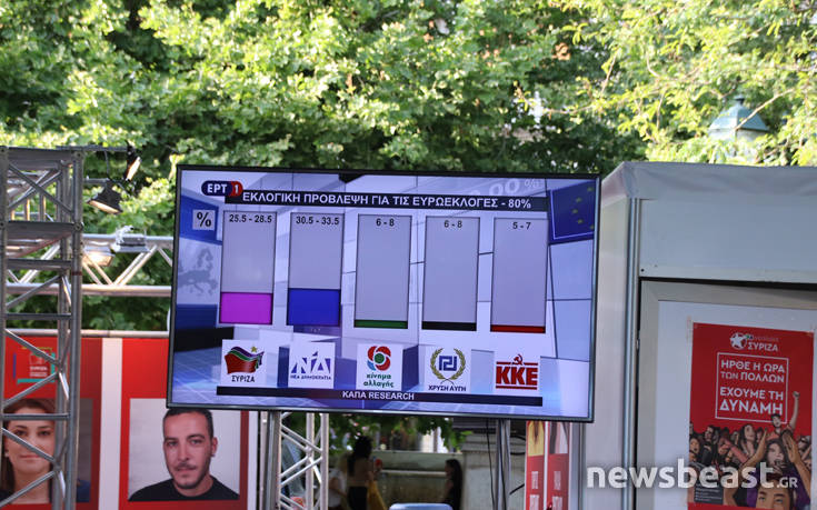 Τα πρώτα αποτελέσματα του κοινού exit poll των ιδιωτικών καναλιών αλλά και η εκτίμηση της ΕΡΤ από την Κάπα Research βγήκαν λίγα δευτερόλεπτα μετά τις 19:00 και οι φίλοι του ΣΥΡΙΖΑ που ήταν συγκεντρωμένοι στο εκλογικό περίπτερο του κυβερνώντος κόμματος δεν έκρυψαν τον ξαφνιασμό τους από το αποτέλεσμα.