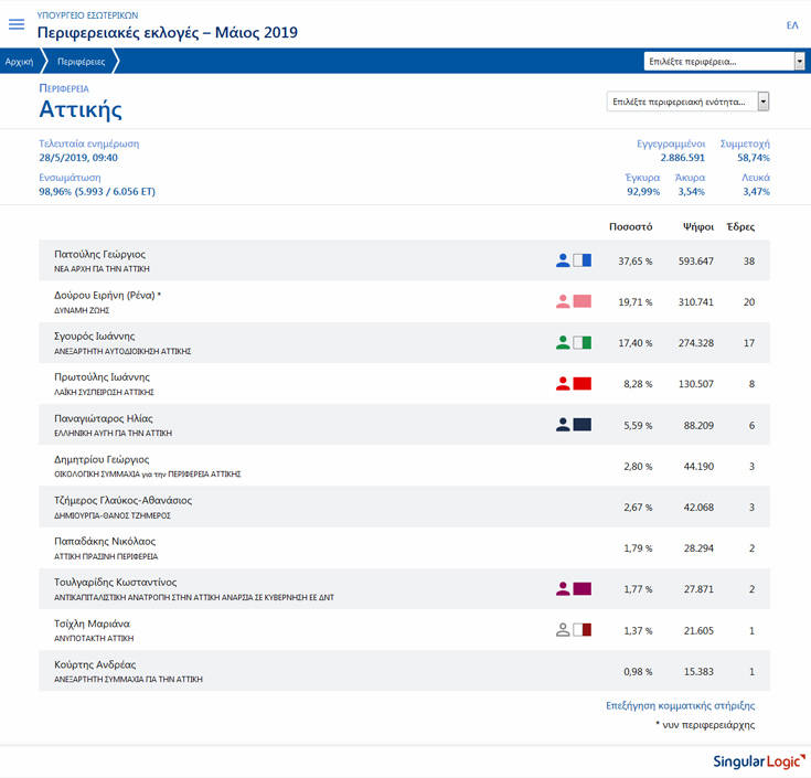 Σύμφωνα με τα μέχρι τώρα στοιχεία, το Jason Αντιγόνη εκλέγεται αφού βρίσκεται στην 19 θέση με την Ρένα Δούρου να έχει 20 θέσεις στους περιφερειακούς συμβούλους.