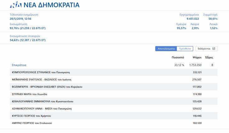 Εκλογές 2019: Ποιοι εκλέγονται – Το newsbeast.gr, όπως σε κάθε εκλογική διαδικασία εδώ και εννιά χρόνια, καλύπτει έγκυρα και αναλυτικά όλες τις εξελίξεις, ενημερώνοντας άμεσα τους αναγνώστες του για τα αποτελέσματα των Εκλογών 2019, τους υποψήφιους που βγαίνουν νικητές από την εκλογική μάχη και όλα τα νεότερα. Μπορείτε να παρακολουθήσετε τη μάχη λεπτό προς λεπτό στους δυναμικούς εκλογικούς χάρτες:
