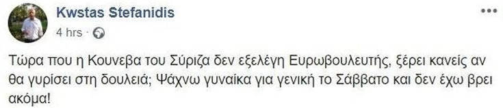 Αυτή είναι η ανάρτηση του Κώστα Στεφανίδη: