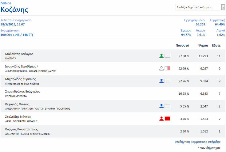 Πριν από λίγο αναρτήθηκε η απόφαση του Πρωτοδικείου, που αναφέρει ότι ο συνδυασμός του Λευτέρη Ιωαννίδη «Κοζάνη τόπος να ζεις» λαμβάνει 9024 ψήφους και ο συνδυασμός του Κυριάκου Μιχαηλίδη «Μετάβαση για τον δήμο Κοζάνης» 9012 ψήφους. Η διαφορά, είναι μία ψήφος λιγότερη από το αρχικό αποτέλεσμα για τον συνδυασμό του Λευτέρη Ιωαννίδη.