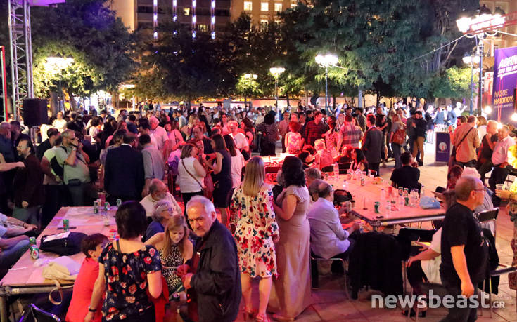 Την προεκλογική ομιλία του κ. Ηλιόπουλου, που την Κυριακή θα αναμετρηθεί για τον δήμο Αθηναίων με τον Κώστα Μπακογιάννη, ακολούθησε πάρτι, στο οποίο επίσης παραβρέθηκαν οι αξιωματούχοι της κυβέρνησης.