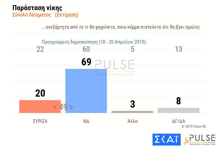 Τη δημοσκόπηση διενήργησε η εταιρεία Pulse RC για λογαριασμό του ΣΚΑΪ.