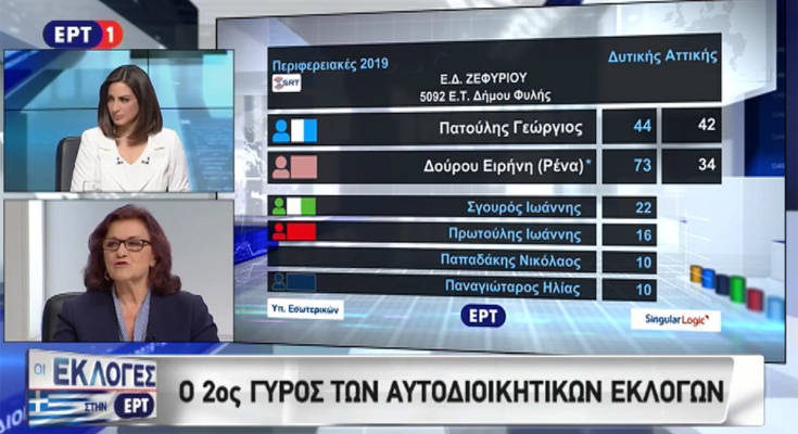 Στον πρώτο γύρο, ο υποψήφιος με τη ΝΔ Γιώργος Πατούλης έλαβε 37,63% έναντι 19,71% της Ρένας Δούρου.