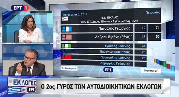 Από τα πρώτα στοιχεία που βλέπουν το φως της δημοσιότητας για τη δεύτερη Κυριακή, φαίνεται πως ο Γιώργος Πατούλης προηγείται της κ. Δούρου.