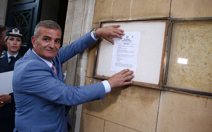 Το Προεδρικό Διάταγμα θυροκόλλησε στην ανατολική είσοδο του Μεγάρου του Κοινοβουλίου, ο φρούραρχος της Βουλής, υποστράτηγος, Κωνσταντίνος Κυριαζόπουλος.