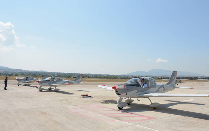 Πραγματοποιήθηκε σήμερα στην Αεροπορική Βάση Δεκέλειας στο Τατόι η τελετή παραλαβής των 12 νέων εκπαιδευτικών αεροσκαφών Σταδίου Επιλογής, τύπου TECNAM P-2002JF, από την Πολεμική Αεροπορία.