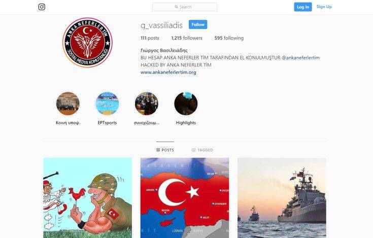 Επίθεση από Τούρκους χάκερς δέχθηκε ο λογαριασμός στο Instagram του υφυπουργού αθλητισμού, Γιώργου Βασιλειάδη.