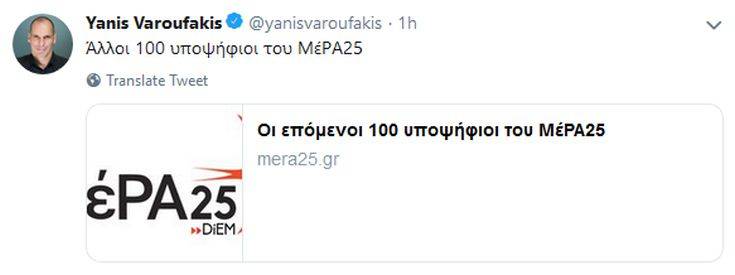 Ακόμη 100 υποψήφιους για τις εθνικές εκλογές 2019 ανακοίνωσε το κόμμα του Γιάννη Βαρουφάκη, ΜέΡΑ25. Ανάμεσά τους ο ηθοποιός Γιώργος Χρανιώτης αλλά και η τρανς ακτιβίστρια Πάολα Ρεβενιώτη.