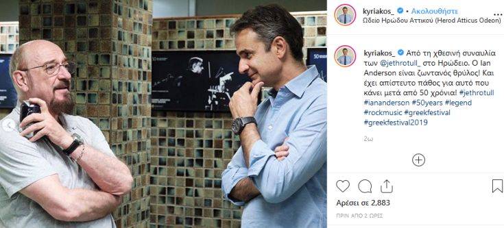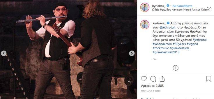 «Από τη χθεσινή συναυλία των @jethrotull στο Ηρώδειο. Ο Ian Anderson είναι ζωντανός θρύλος! Και έχει απίστευτο πάθος για αυτό που κάνει μετά από 50 χρόνια!».
