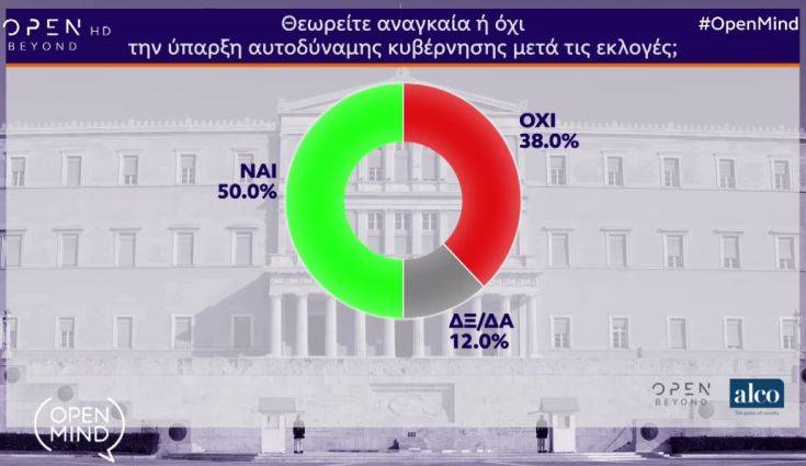 Τέλος, σημαντικό είναι πως οι μισοί από τους ερωτηθέντες θέλουν το πρώτο κόμμα να σχηματίσει αυτοδύναμη κυβέρνηση.