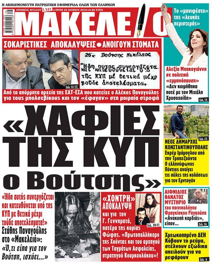 Σε δήλωση για το σημερινό πρωτοσέλιδο της εφημερίδας «Μακελειό» το οποίο μεταξύ άλλων ανέφερε ότι «ήταν χαφιές της ΚΥΠ», προέβη το Πρόεδρος της Βουλής των Ελλήνων Νίκος Βούτσης.