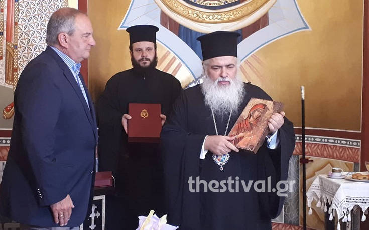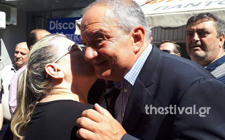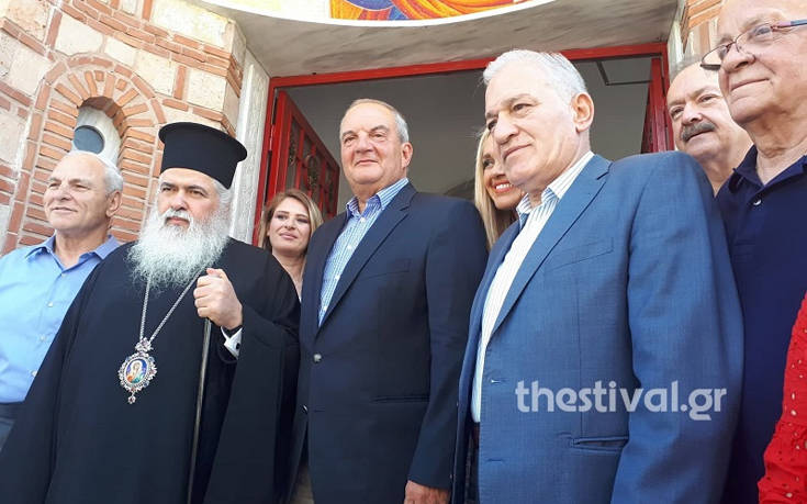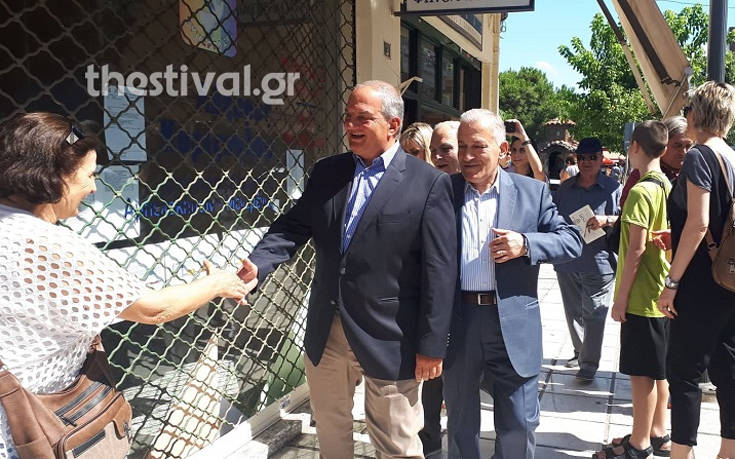 Πρώτος σταθμός της περιοδείας του ήταν ο ιερός ναός του Αγίου Παντελεήμονα, στους Αμπελόκηπους, όπου τον υποδέχτηκαν ο μητροπολίτης Νεαπόλεως Σταυρουπόλεως, Βαρνάβας, ο δήμαρχος Αμπελοκήπων Μενεμένης, Λάζαρος Κυρίζογλου, ο πρόεδρος της Διοικούσας Επιτροπής νομού Θεσσαλονίκης της Νέας Δημοκρατίας, Τάσος Σπηλιόπουλος και υποψήφιοι βουλευτές.