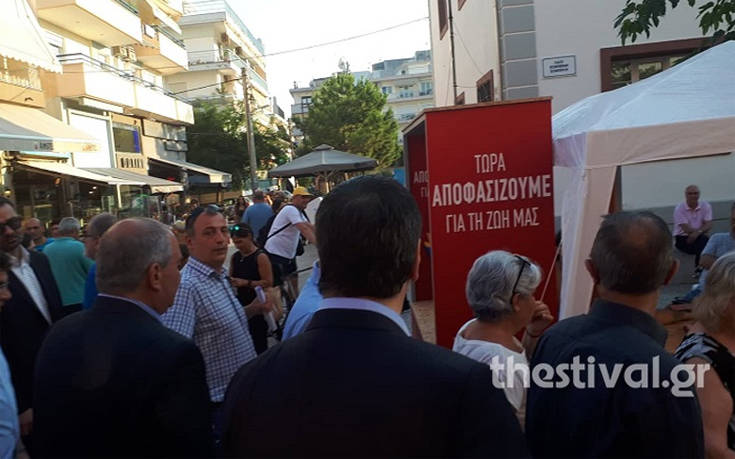 Ο πρώην πρωθυπουργός έτυχε θερμής υποδοχής στην Καλαμαριά, βγήκε δεκάδες φωτογραφίες ενώ δεν ήταν λίγοι αυτοί που έσπευσαν να τον αγκαλιάσουν και να τον φιλήσουν.