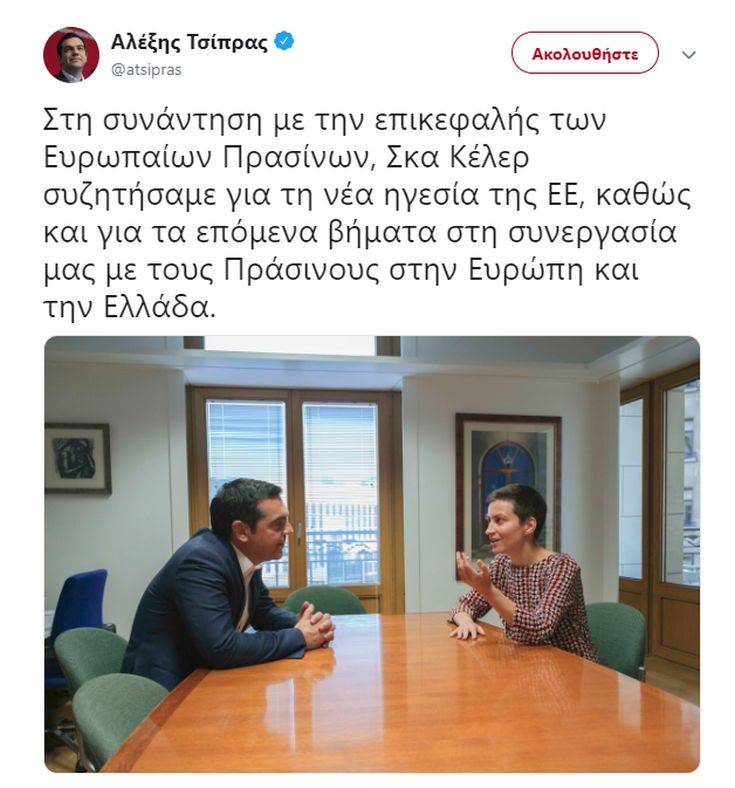 Όπως έγραψε σε ανάρτηση του στο Twiiter, συζήτησαν για τη νέα ηγεσία της Ευρωπαϊκής Ένωσης, καθώς και για τα επόμενα βήματα στη συνεργασία με τους Πράσινους στην Ευρώπη και την Ελλάδα.