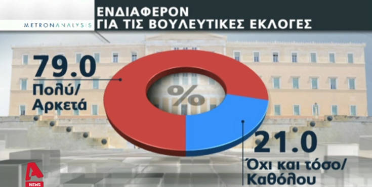 Σύμφωνα με τα ευρήματα της δημοσκόπησης, οι πολίτες σε ποσοστό 79% απαντούν πως τους ενδιαφέρουν αρκετά ή πολύ οι βουλευτικές εκλογές ενώ το «όχι» συγκεντρώνει 21%.