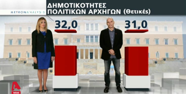 Ακολουθεί η Φώφη Γεννηματά με 32% ενώ Γιάννης Βαρουφάκης και Δημήτρης Κουτσούμπας ισοβαθμούν στο 31%.