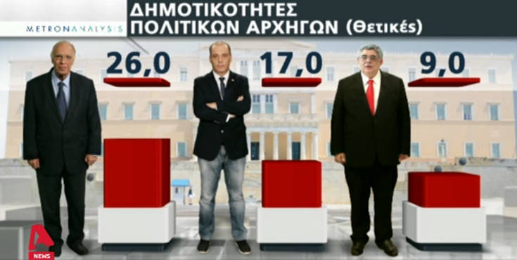 Ο Κυριάκος Μητσοτάκης προηγείται και στη δημοτικότητα, με θετικές γνώμες σε ποσοστό 45%, έναντι 36% του Αλέξη Τσίπρα.
