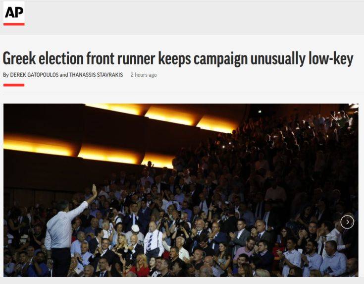 Το Associated Press τονίζει την «άδικη» επίθεση που πολλές φορές δέχθηκε ο πρόεδρος της Νέας Δημοκρατίας από τον Αλέξη Τσίπρα και το ΣΥΡΙΖΑ σχετικά με την νεοφιλελεύθερη πολιτική του.