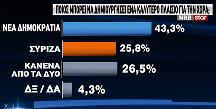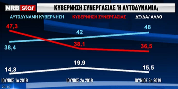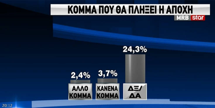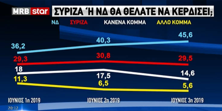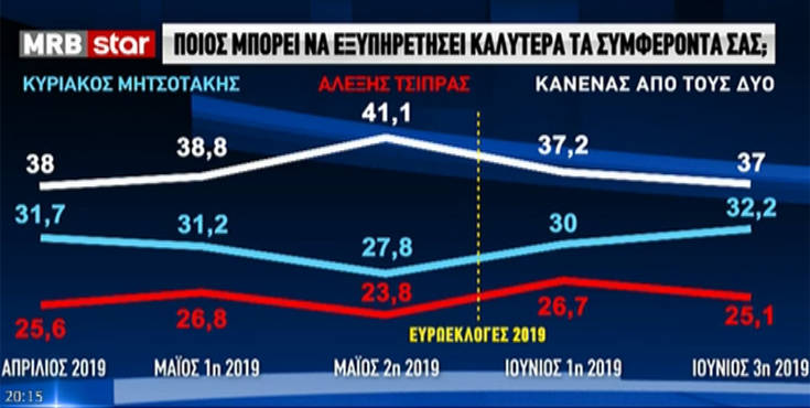 Tην τελευταία δημοσκόπηση πριν τη μεγάλη μάχη των εθνικών εκλογών της Κυριακής 7 Ιουλίου, παρουσίασε το Star στο κεντρικό του δελτίο ειδήσεων από την εταιρεία MRB.