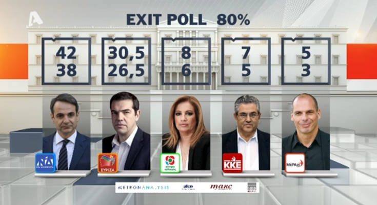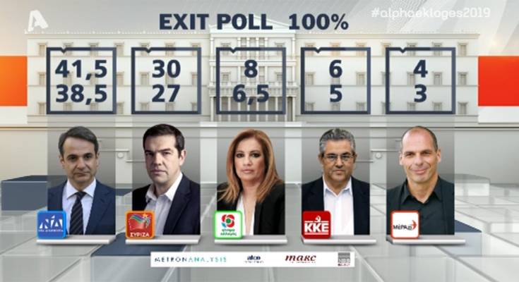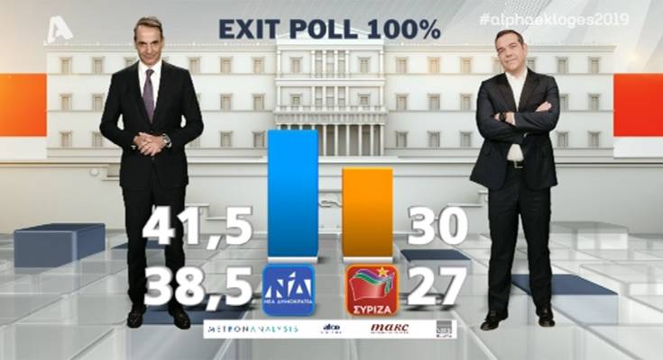Οι κάλπες της μεγάλης μάχης των εθνικών εκλογών έκλεισαν στις 19:00 και άμεσα βγήκε η πρώτη εκτίμηση από το exit poll.